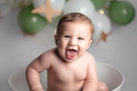 After all the excitement of smashing up the cake we put your little one in a bubble bath and let them splash about whilst I capture some super adorable and fun bath time photos!